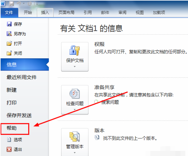 1、首先我们打开安装好的word2010,单击文件——帮助。