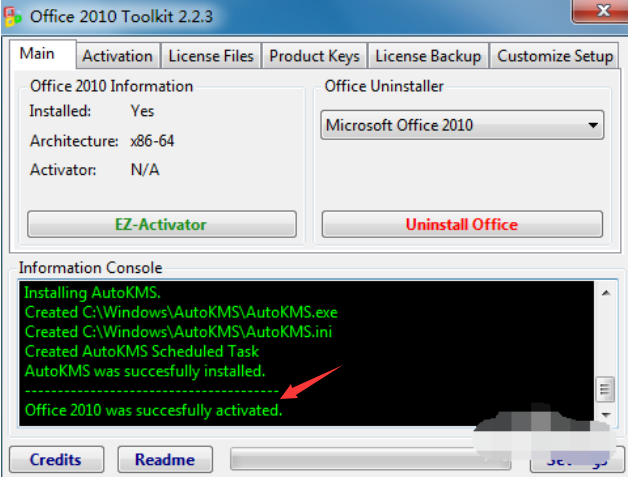 4、接下来只需耐心等待软件自动激活office2010,提示激活成功即可。
