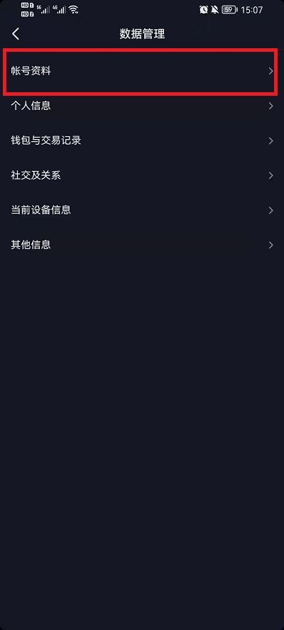 4、进入到此功能界面中之后,用户需要点击最上方的【账号资料】进入查看自己账号;