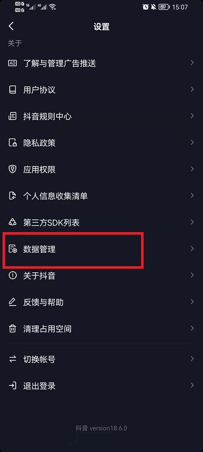 3、然后在其设置中,上划所有功能,然后在最下方找到【数据管理】,点击进入到此功能页面;