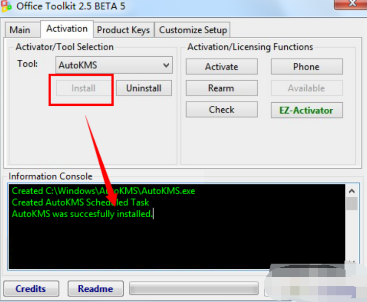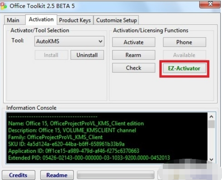 4. 看到显示“成功”提示后,点击“EZ-Activator”按钮以便完成Office213激活操作。