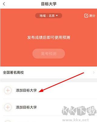 2、进入到目标大学界面,通过点击箭头所指的位置添加或修改目标大学。