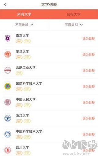 4、在上一步点击大学后,将会出现此大学的具体详情,点击“设为目标”选项即可成功更改目标学校。