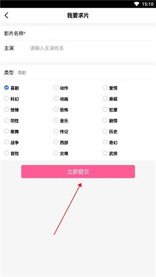 3、接着找到并点击右上角的我要求片选项,