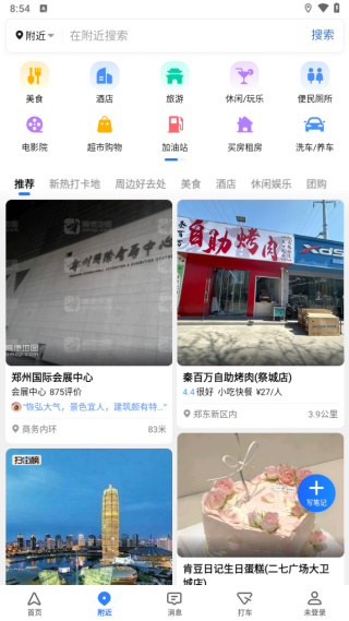 4、底部的附近板块,用户可以查看附近美食、景点、酒店等信息。