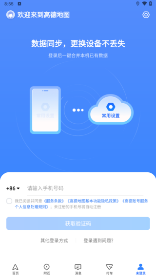 2、进入软件登录界面,用户输入手机号和验证码就可以注册并登录软件了。