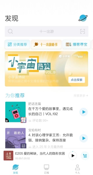 上面是小宇宙的介绍了,本站下载资源均来源网络,不存储任何下载资源,如有侵犯您的权益或者资源有问题,请及时联系我们,更多小宇宙相关资讯及软件,请关注收藏西西软件站。1、在发现里面,大家能够找到各种类型的博客,海量内容自由收听;
