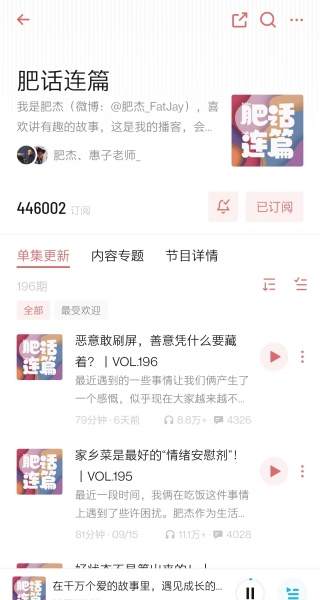 3、在订阅列表,能够找到该系列的所有集数,可以任意选择收听;