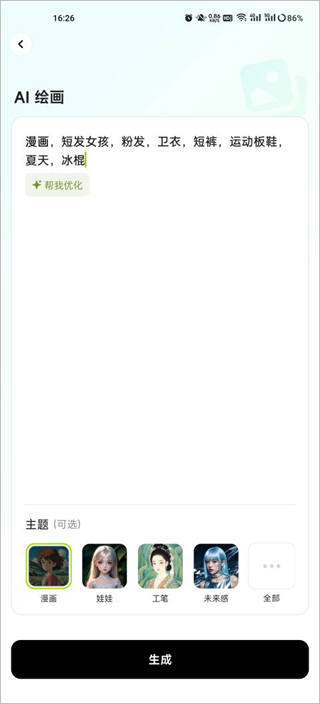 2、选择好主题后输入你想要的图片风格,越详细,生成效果越好。