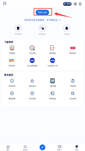 1、启动飞客论坛APP后,点击右下角"个人中心"图标,进入账户管理页面。
