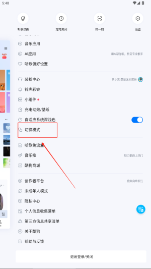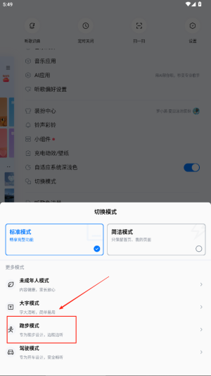 3、从弹出的菜单中选择“切换模式”进行设置,以便调整使用体验。