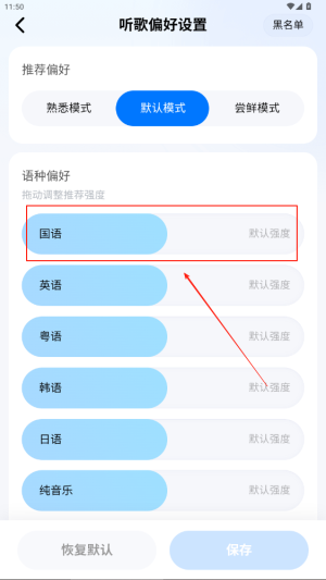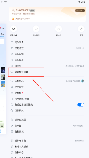 3、选择“听歌偏好设置”,进入偏好设置界面进行调整。