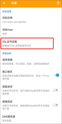 1、打开黄鸟抓包app,进入菜单栏选择目标应用。