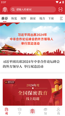 随着保密法规和政策的不断更新,保密观安卓版也会及时更新相关内容,学习到最新的知识,拥有看、学、考三大板块,以图文的方式呈现知识,全球最新的保密动态和政策法规第一时间传递给用户。