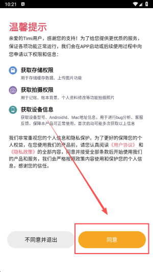 1、请点击同意按钮,以便顺利进入应用程序,开始使用各种功能。