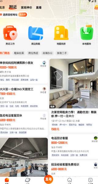3、点击附近,能够专门显示附近所有日常服务和招聘信息;
