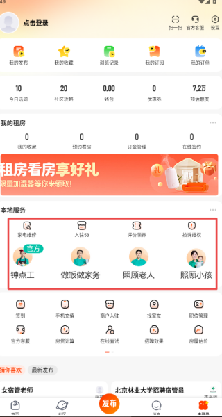 3、拥有丰富的服务,从租房子,找工作,二手交易,订票等等服务都应有尽有;