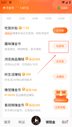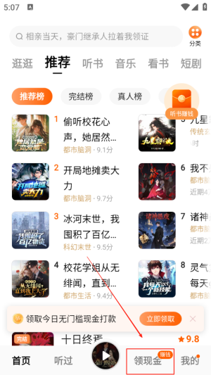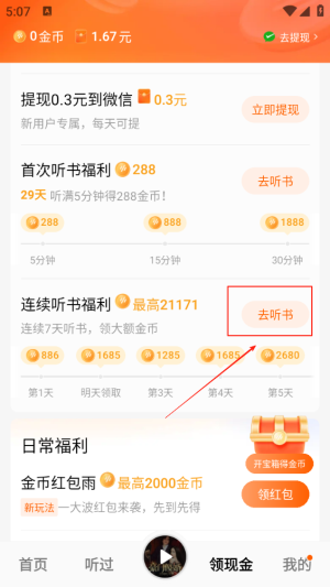 3、通过“听书”功能来领取金币,轻松享受阅读的乐趣与奖励。
