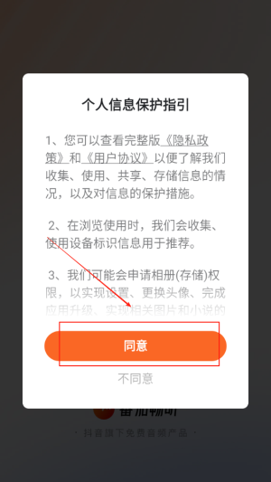 1、点击“同意”按钮,以顺利进入应用程序,开启各种功能的使用。