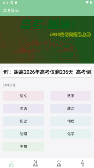 高考笔记app是专为高考的用户量身打造的一款手机学习软件,这里能够为用户提供大量优质的学习资料,覆盖了语文、数学、英语、政治、历史、地理等全部科目的重点学习资料,还拥有大量的历年考试真题,让你随时随地都可以通过手机在线刷题练习,并且每一道题都有标准的答案和详细的解析,方便你可以更好的理解,轻松的掌握更多的高考知识点;同时这里还为用户提供了各种练习模式,用户可以根据自己的需求在这里自由的选择,得到更好的学习效果,并且还能够为你提供模拟考题,你可以通过模拟考题更好的检测自己的学习效果。