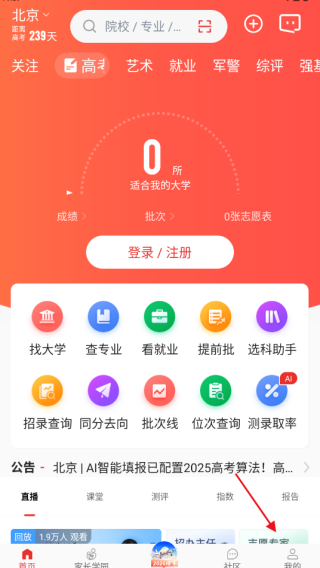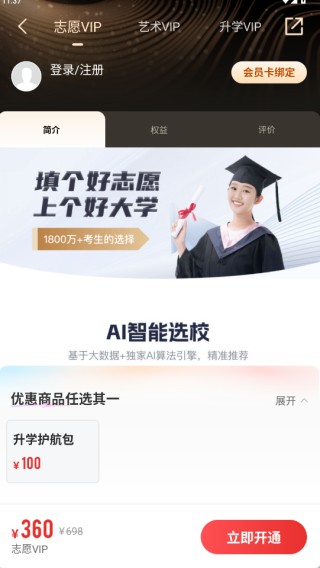 以上就是优志愿的介绍了,本站下载资源均来源网络,不存储任何下载资源,如有侵犯您的权益或者资源有问题,请及时联系我们,更多优志愿相关资讯及软件,请关注收藏西西软件站。1、打开软件进入到登录页面,登录账号后就能使用此应用