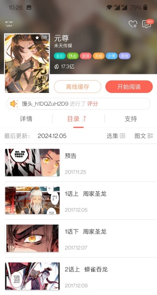 4、跳转到搜索动漫的列表界面,选择集数就能开始阅读了!