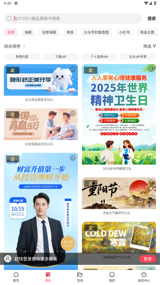 全网热点模板实时更新,更有小红书、抖音、公众号、电商、政务媒体、谷雨等高质量海报不断上新。