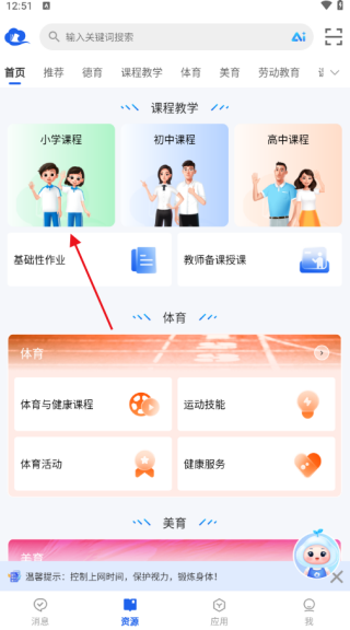 1、打开软件,在首页就能看到小学课程功能,点击进入使用。