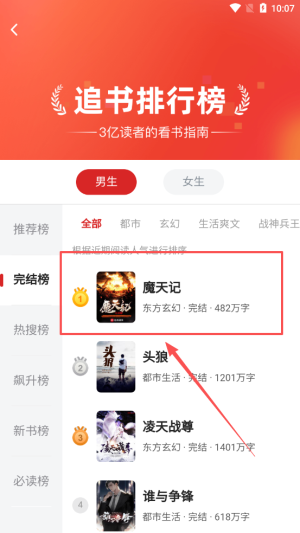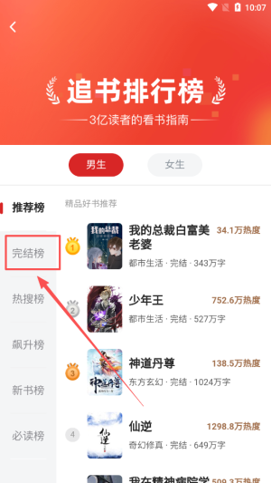 4、从完结榜中浏览喜爱的小说,挑选出适合自己的书籍,尽情享受阅读的乐趣。