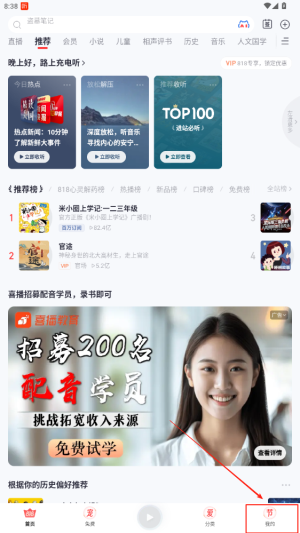 3、点击首页,用户可以在这里快速的选择自己喜欢的内容进行收听