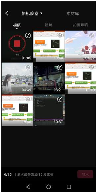 2、在相册中选择需要剪辑的视频,选择好后导入。