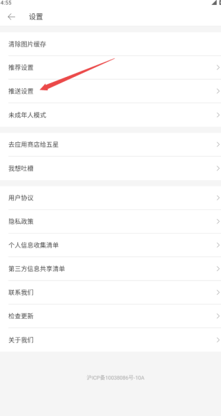 2、进入设置详情页,找到推送设置,点击进入推送设置栏;