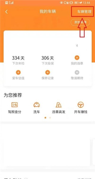 3、然后点击右上方的车辆管理按钮,进入管理界面;
