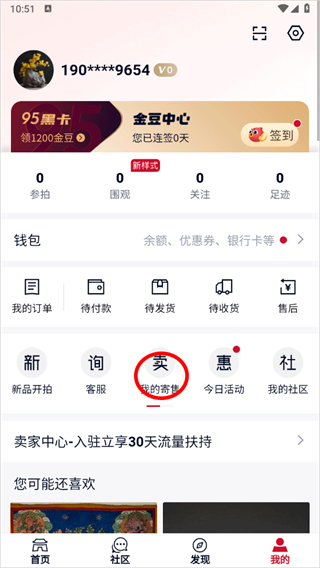 2、进入我的页面,点击我的寄售,进入对应页面。