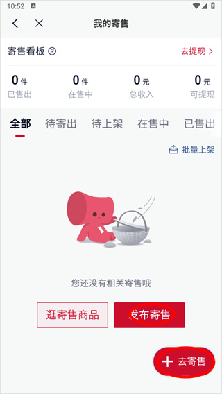 3、在我的寄售页面,点击发布寄售或去寄售。