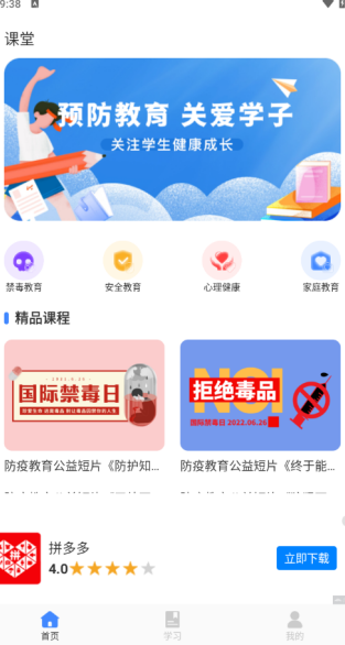 2、进入到首页,提供禁毒教育、安全教育、心里健康等多个栏目。