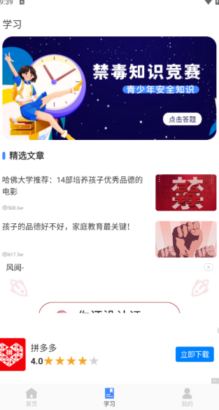 3、点击学习,可以在这里及时了解最新的禁毒答题学习,让您轻松开启您的学习生活。
