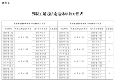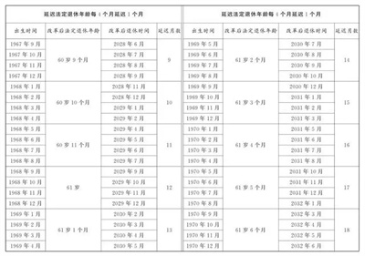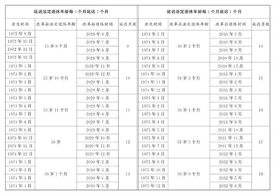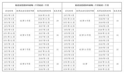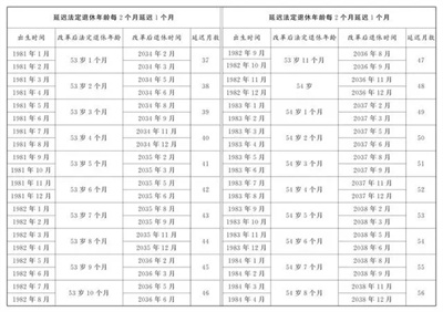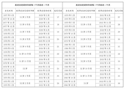 原法定退休年龄五十五周岁的女职工延迟法定退休年龄对照表