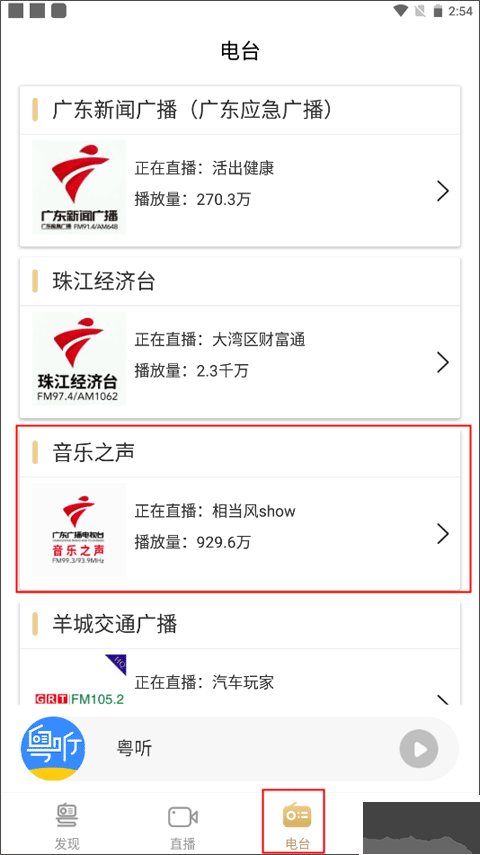 2、如果你想要观看电台直播,需要注意右边是否显示"直播"这几个字,选好你想听的电台直播;