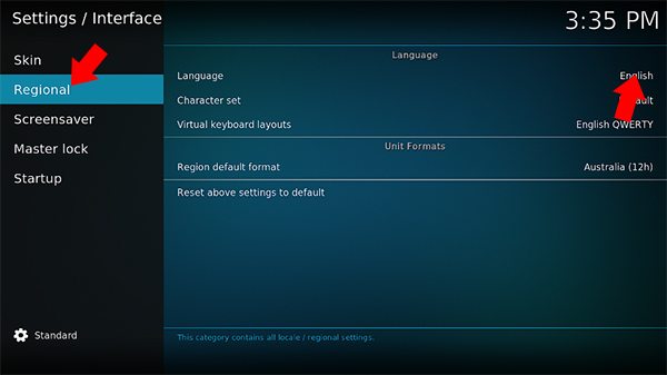 4、接着点击左侧的Regional选项,将其中的Language选项改为Chinese(Simple)