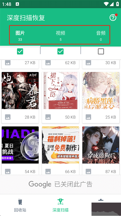 3、除了可以恢复手动删除的文件外,一些被系统删除掉的缓存图片、音频及视频也能被扫描出来。