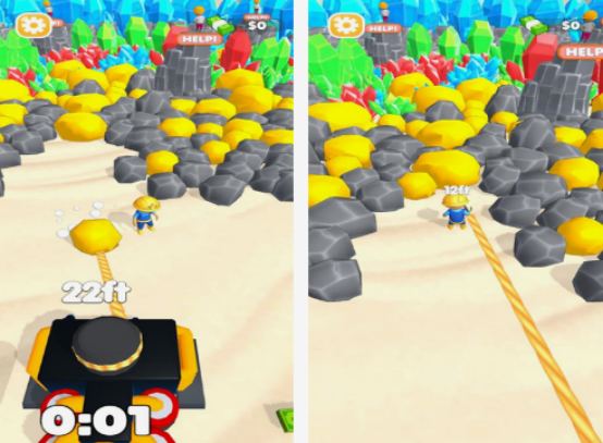 进入了遍地都是黄金,同时还有其他灰色石块的环境当中,玩家也需要正确利用工具对准黄金,就可完成挖金子的任务。如果想要获得更高奖励的话,必须要在规定的时间内争分夺秒,发挥自己挖金子这方面的实力。里面的人物特别的可爱,甚至体型都要比黄金看上去还要小,不过却因为有特别庞大的机器,帮助挖金的时候更顺利。