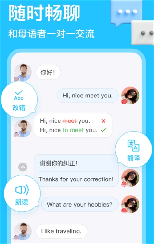 在这里大家能够通过文字的方式来进行交友,同时还有语音以及视频等聊天功能也会带给大家,这对于想要去学习外语的朋友而言也是非常不错的,重点就在于能够进行语言的交换,让大家了解不同的文化背景,沟通的时候也十分便利。