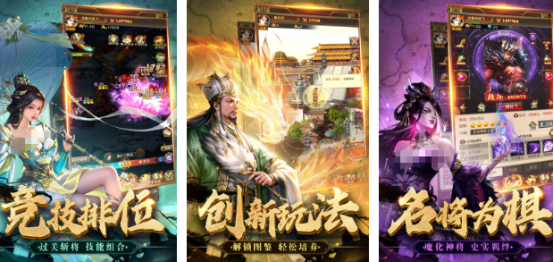 三国题材上又融入了卡牌特色,原有基础上又呈现出阵容搭配及阵营克制等多样化创新模式,参与到排位竞技中,享受无比激情的竞技对决,通过抽卡的方式解锁更多图鉴,轻松培养你喜欢的名将,比如充满智慧的诸葛亮,又或者是无畏牺牲英勇奋战的吕布,还有携带着众多名将的曹操,以名将为题,以三国地图为背景,将在这里展开史诗级冒险之旅。