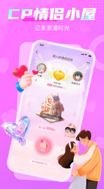 集语音、视频聊天于一体,并设有CP小屋等特色空间,增强用户之间的陪伴感。整体设计注重互动体验,适合喜欢多元化交流方式、追求趣味社交的用户使用。