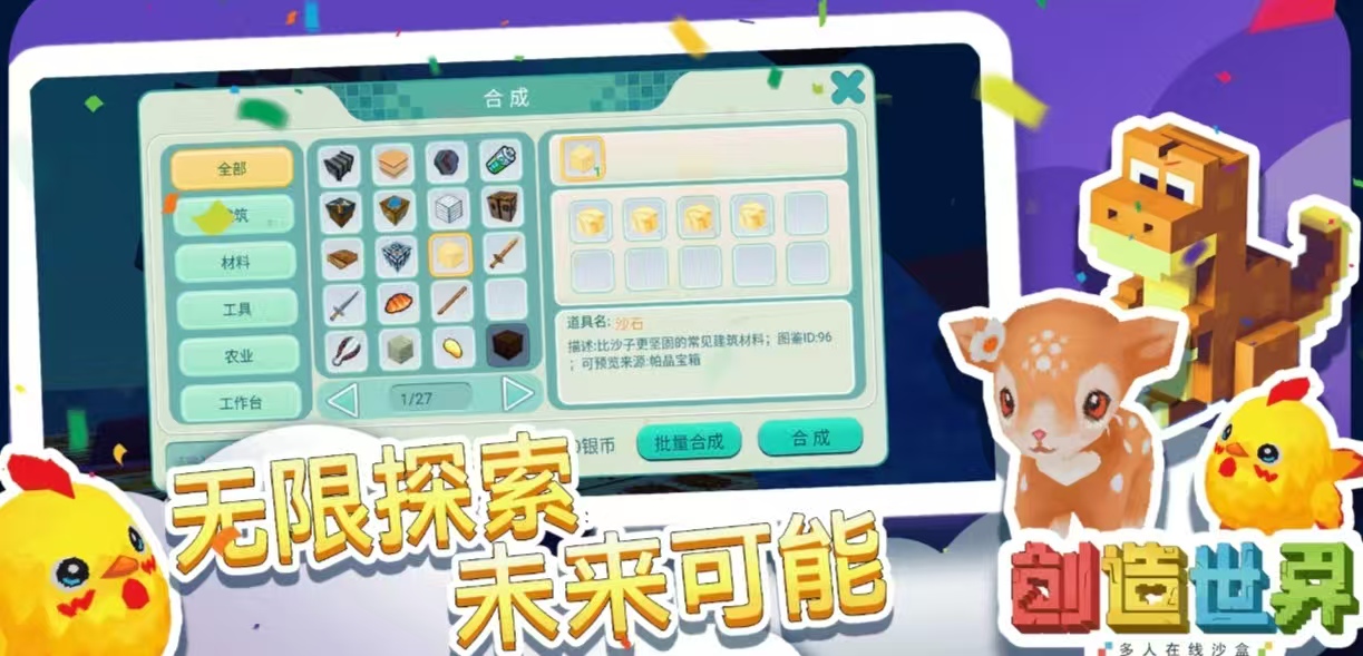 《创造世界》可以高度自由的进行模拟建设,游戏内打造的风格也是相当独特,可以随机的搜索地图上的空间,也会随机出现一些危险的怪物。可以建造许多的城堡建筑,收集到的资源可以用来利用,可以为将士角色选择装备,和周围的怪物角色进行对抗。推荐玩家率先为角色升级,这样可以拥有更高的战斗能力,拥有着很多危险的区域可以探索,建筑物的种类也相当丰富。