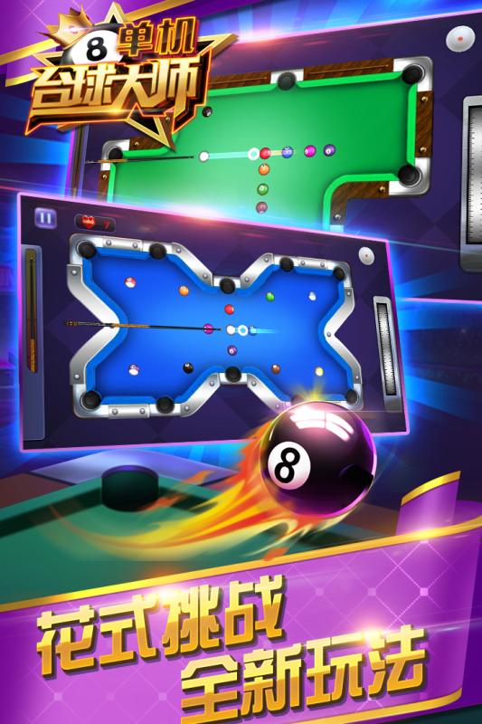 一款3D台球竞技类手机游戏,包含美式台球、斯诺克、开伦台球等20多种玩法,支持人机对战、在线对战,也可以本地双人共享设备进行游戏。操作上和其他台球游戏一样通过触摸屏幕控制击球方向和力度,引入物理引擎用于模拟台球的惯性、旋转,支持自由视角和第一人称视角切换功能,人机对战有四个难度级别可供选择,适应不同水平玩家。