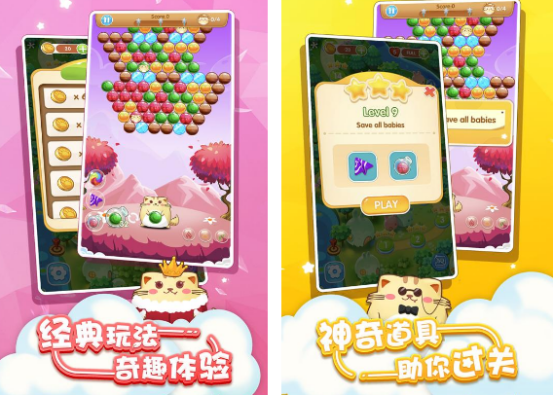经典的泡泡射击游戏,它就是需要不断旋转来展开消除玩法的,此款消除游戏有着清晰的画面风格,通过将屏幕上的气泡完全消除以后,就能挑战成功。也是以经典的泡泡龙为玩法的,将三个或更多的泡泡通过炸裂以后,你就能获得分数帮助,在通关的过程中更顺利,还设置了诸多神奇的道具,需要在玩的时候尽量的获得更高的分数。