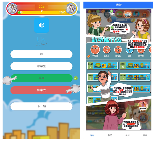 专为人教版英语课本而推出的配套点读工具,不仅仅是收录了人教版英语各个年级的电子教材,更是通过小剧场、小动画等形式让课本变得更加生动,从而提升孩子们的学习兴趣,更是加深对课文、单词、句型的记忆。软件中还带有丰富的口语练习、AI评测,帮助我们随时测试英语水平和口语能力,更是能够通过测试结果自动推荐一些强化训练项目,有的放矢地提升英语学习成绩。
