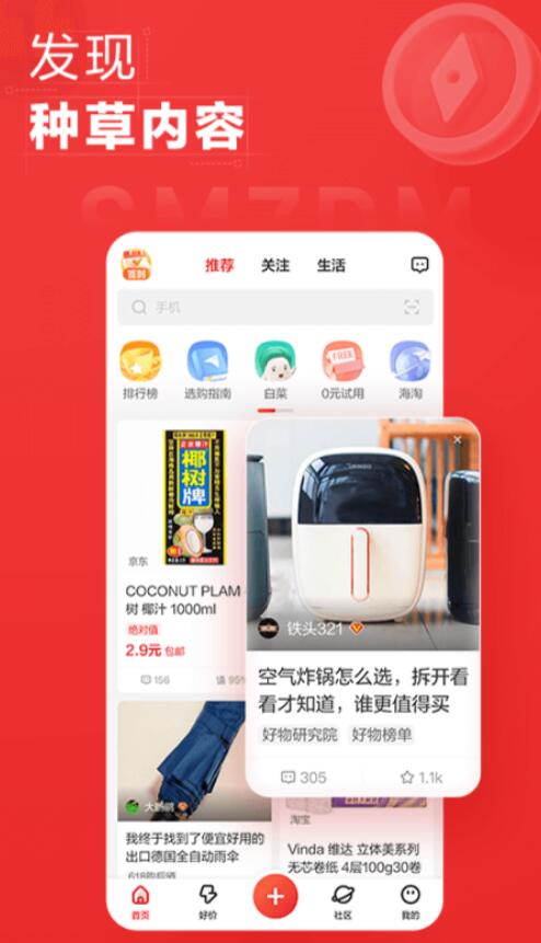 首页会显示许多介绍详细的种草文章,让你可以发现许多宝藏好物,应用还会记录每款商品在不同时间段和不同平台上的售价,帮你找到低价的购入渠道。